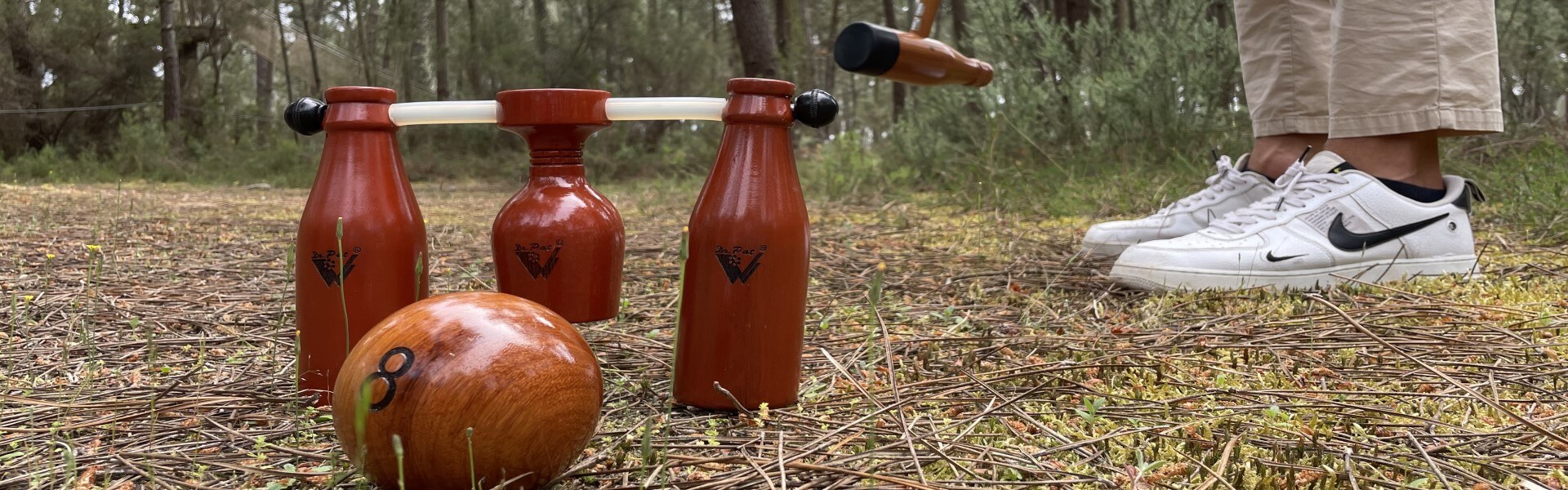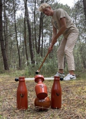 Le WOODBALL est un sport où un maillet est utilisé pour passer une balle à travers les portes